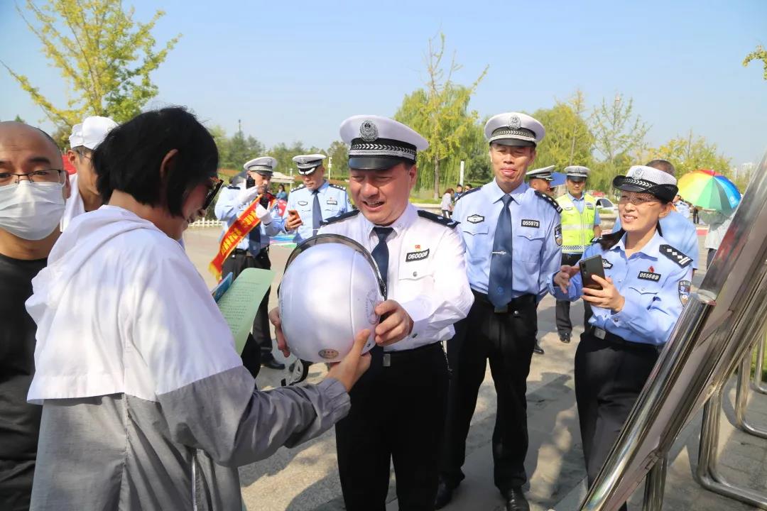 宣传民警一边向市民群众发放“一盔一带”宣传资料,一边宣传安全知识并通过知识问答的方式,向答对的市民赠送互动小礼品,当日共计发放安全头盔50个,解答群众各类咨询200余次。