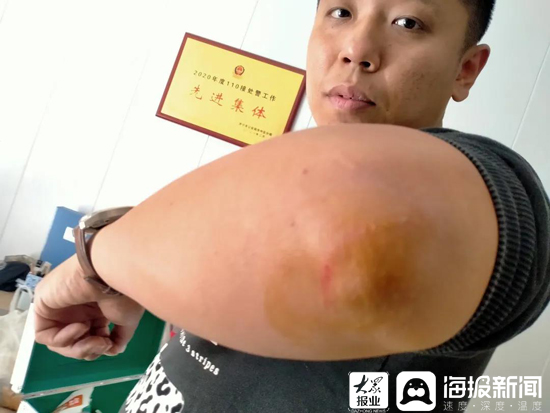 救援中,由于该女子1岁多的孩子在墙角地垫上,孔昊为了防止踩伤孩子,用自己的身体当靠垫,托住了轻生女子身体。为了避开孩子,孔昊重重的摔在屋内铁架上,致使左手手肘处擦伤,及右腿脚踝扭伤。