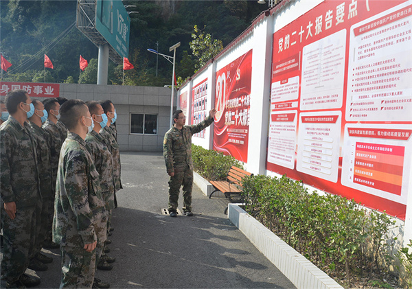 氛围营造深入人心。以学习宣传贯彻党的二十大精神为主题,更新营区各类展板、橱窗、宣传栏、板报。以横幅、标语等方式加强宣传造势,利用营区广播、LED电子屏等形式收送展播相关学习内容,以主题新颖、图文并茂、形式新颖的内容精心设置学习宣传文化墙,引导全员领会大会精神、把握学习要点、明确努力方向。