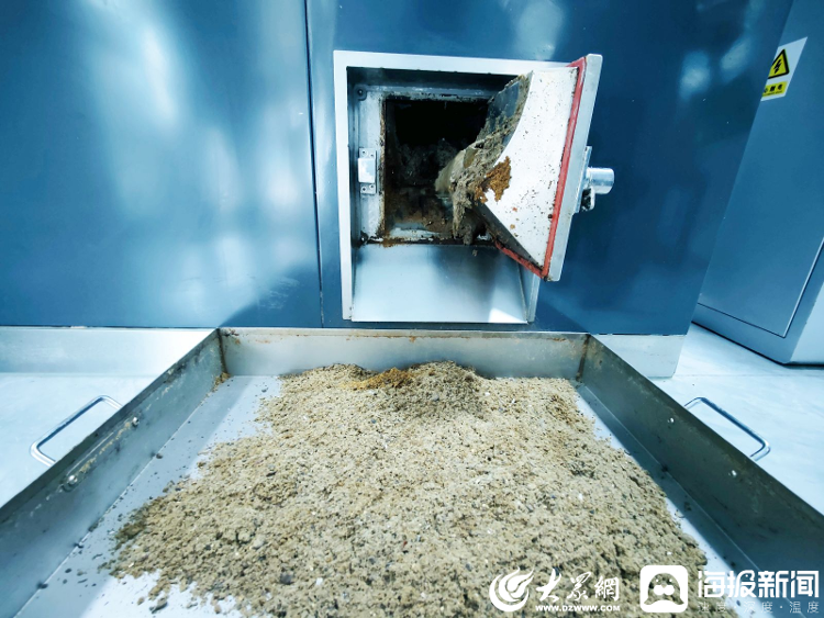 “通过智能面板,机器既可以手动运行,也可以自动化运作。”李勇介绍,现在机器的整个运行过程处于自动运行状态,从一开始的自动提升,到油水分离,再到物理杀菌、脱水干燥,最后可以提取出厨余油脂及有机物干粉。在面板右侧靠墙区域,堆放了不少已经装袋完成的干粉原料。“这些干粉一点也不沾手,而且也不会变质,相比原来极易腐坏的厨余垃圾,这样储存可方便太多了。”李勇用铲子将机器中的干粉取出放在铁盘里,不仔细看,铁盘里仿佛铺了一堆沙子,用手触摸,还带有一丝温热。