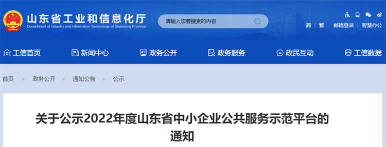 2022年度山东省中小企业公共服务示范平台拟通过名单