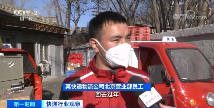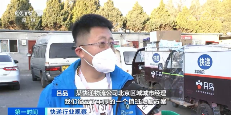 某快递物流公司北京区域城市经理 吕品:我们设立了丰厚的值班激励方案,并且通过派件分成的形式设立了多个激励的红包。在除夕夜的时候,为值班的快递小哥设立了丰盛的年夜饭,以及返乡人员往返车费的一个报销的方案。