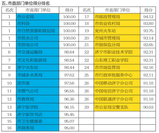 3月2日至3日,济宁市创建全国文明典范城市工作指挥部聘请第三方对济宁市文明典范城市创建工作,按照测评标准进行了模拟测评。测评点位由第三方随机抽取,采取统一地点类型、统一考察主体、统一考察方式、统一考察时间、统一考察内容的方式进行。现将各区综合得分排名、主城区街道、城乡接合部镇街、城区所属其他镇街和市直部门单位得分排名情况公布如下。