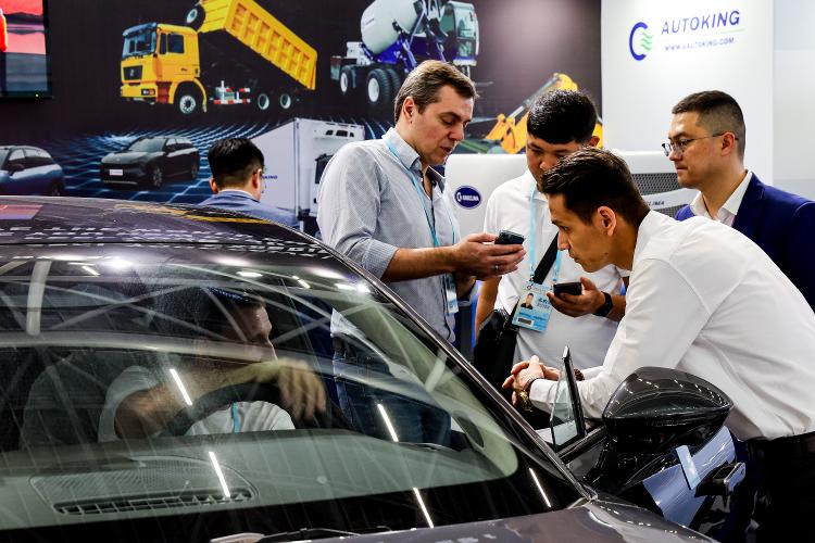 2023年4月15日,采购商在广交会新设置的新能源及智能网联汽车展区了解中国新能源汽车产品。新华社记者 刘大伟 摄
