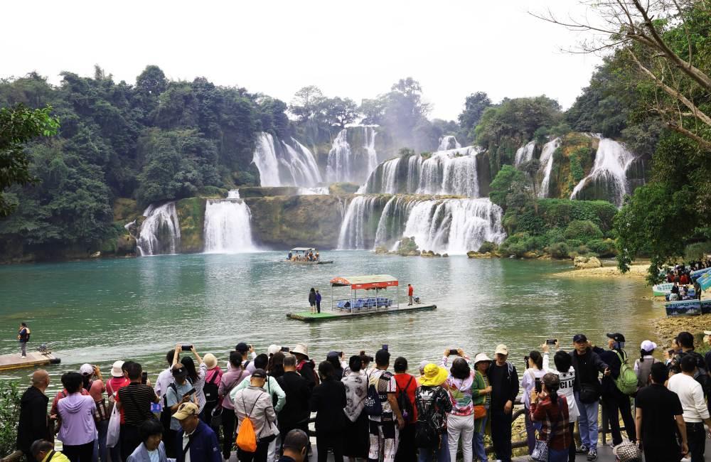△2024年12月,游客在中越德天(板约)瀑布跨境旅游合作区游览。