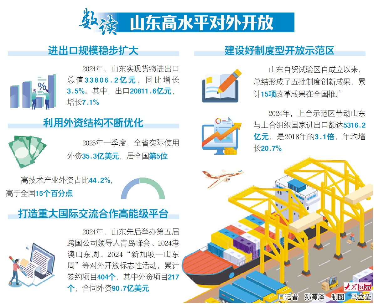 开放是当代中国的鲜明标识。习近平总书记2024年5月在山东考察时,明确要求山东“打造高水平对外开放新高地”“在进一步全面深化改革、推进高水平对外开放上勇争先”。