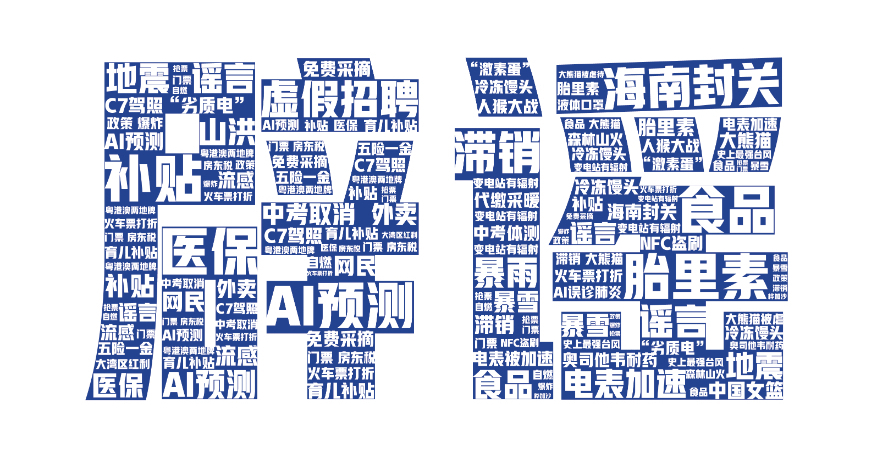 (2025年度网络谣言部分热词云图)