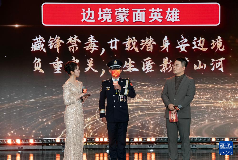 1月28日,由新华社主办的“中国网事·感动2025”公益盛典暨年度颁奖典礼在北京举行,活动揭晓“中国网事·感动2025”十大年度网络人物。这是“边境蒙面英雄”安晓华(中)出席颁奖典礼。新华社记者 李安 摄