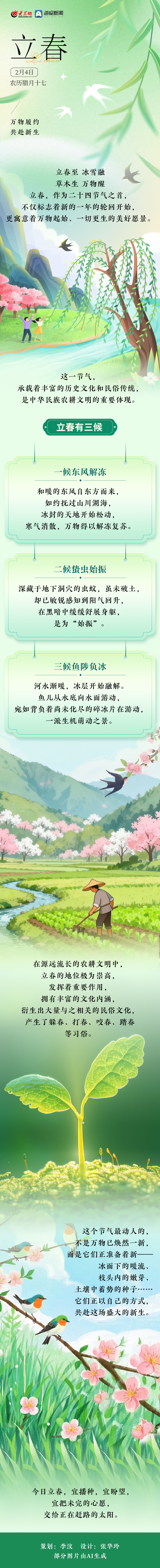 立春:万物履约 共赴新生 来源:海报新闻 编辑:刘锐 02-04 冰的封印悄然消融,大地自沉睡中履约而醒。泥土松开怀抱,草根酝酿新绿,蛰虫在深处翻身。孩童放起纸鸢,农人扶起犁耙。所有的等待都有了归处,所有的生命都在此刻履约,只为共赴一场春的盛宴。这便是立春——不是开始,而是万物准时赴约,共启一个崭新的轮回。