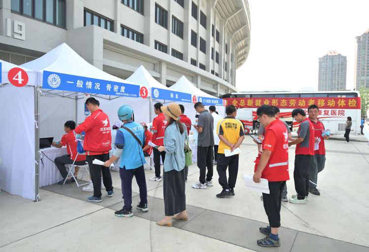 2024年6月13日,中华全国总工会在北京工人体育场举办新就业形态劳动者移动体检专项工作启动仪式,现场为数百名货车司机、网约车司机、快递员、外卖配送员等提供内外科、生化、心电、超声等项目检查。2024年,各级工会为全国超过50万名新就业形态劳动者提供移动体检服务,建立新就业形态劳动者职业健康档案库。