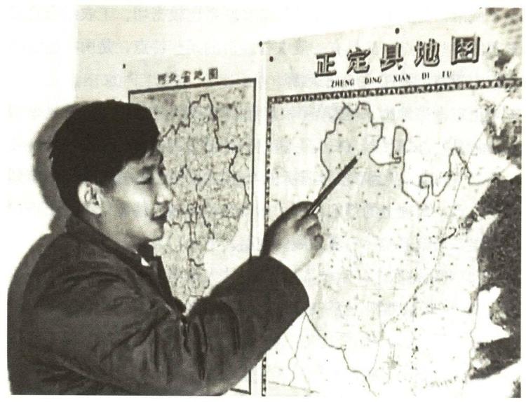 △习近平在办公室地图前谋划正定的发展。