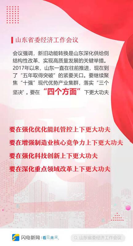 齐鲁网·闪电新闻12月30日讯 山东省委经济工作会议12月27日至28日在济南举行。闪电新闻注意到,今年的会议提出在强化科技创新上下更大功夫,使其成为新旧动能转换的动力和支撑。