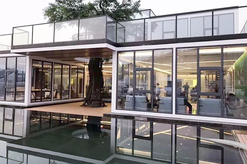 都是以轻钢、轻木、玻璃等为主题元素搭建的
