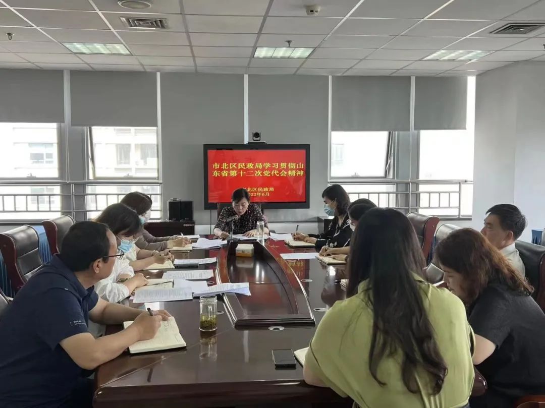 市北区民政局召开专题会议,传达学习省第十二次党代会精神,并作出贯彻落实省党代会精神的工作部署。
